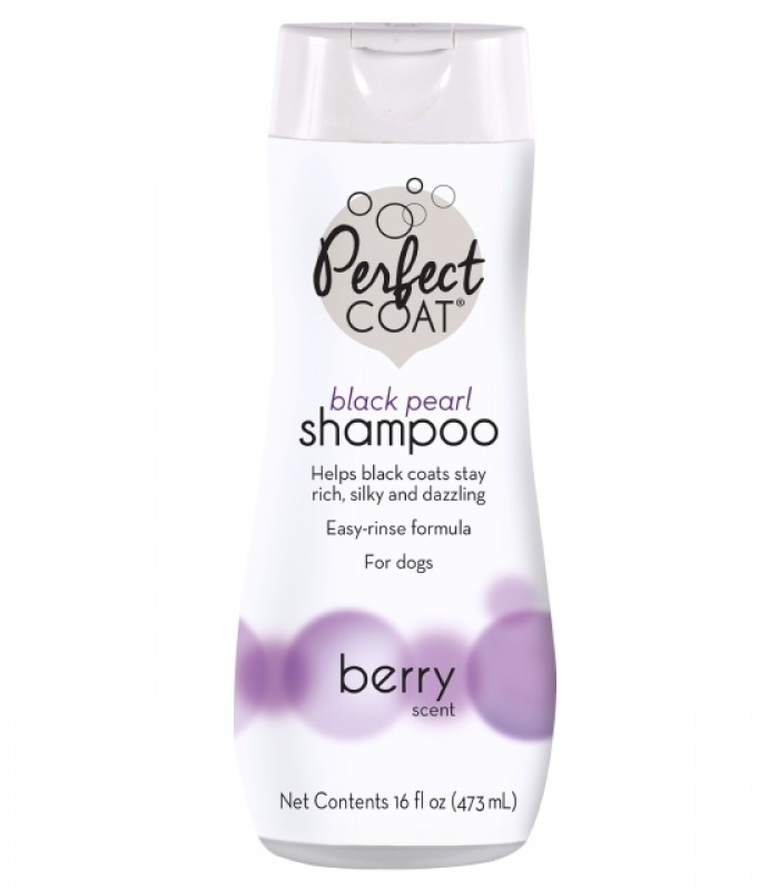 Perfect Coat Black Pearl Shampoo is specially formulated with natural black pearlescents to help maintain the richness and sine of black and dark coats. Gentle Aloe Vera and additional moisturizers have been added help condition your dog’s skin. This product has an easy rinse formula that effortlessly washes away soap and lather, cutting bath time in half! It works by preventing shampoo solids from settling on the coat during lather and easily washes away during rinsing. The no buildup, no excess oil formula also provides a long lasting boysenberry fragrance you are sure to love! Keep your pets looking rich, silky and dazzling with Perfect Coat Black Pearl Shampoo!